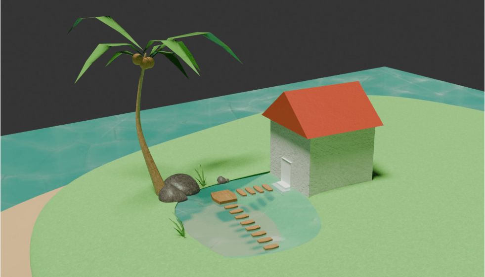 - Created an island scene in Blender with various reflective objects for testing mirror reflection techniques.